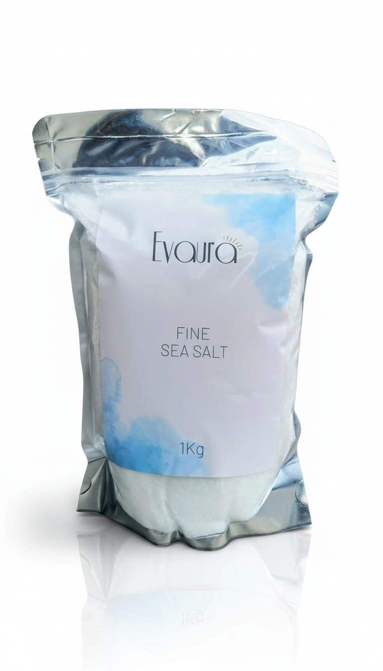 Perfect for cooking, baking, sauces, soups, marinades, and dressings, Evaura Fine Sea Salt is a reliable essential for daily use.