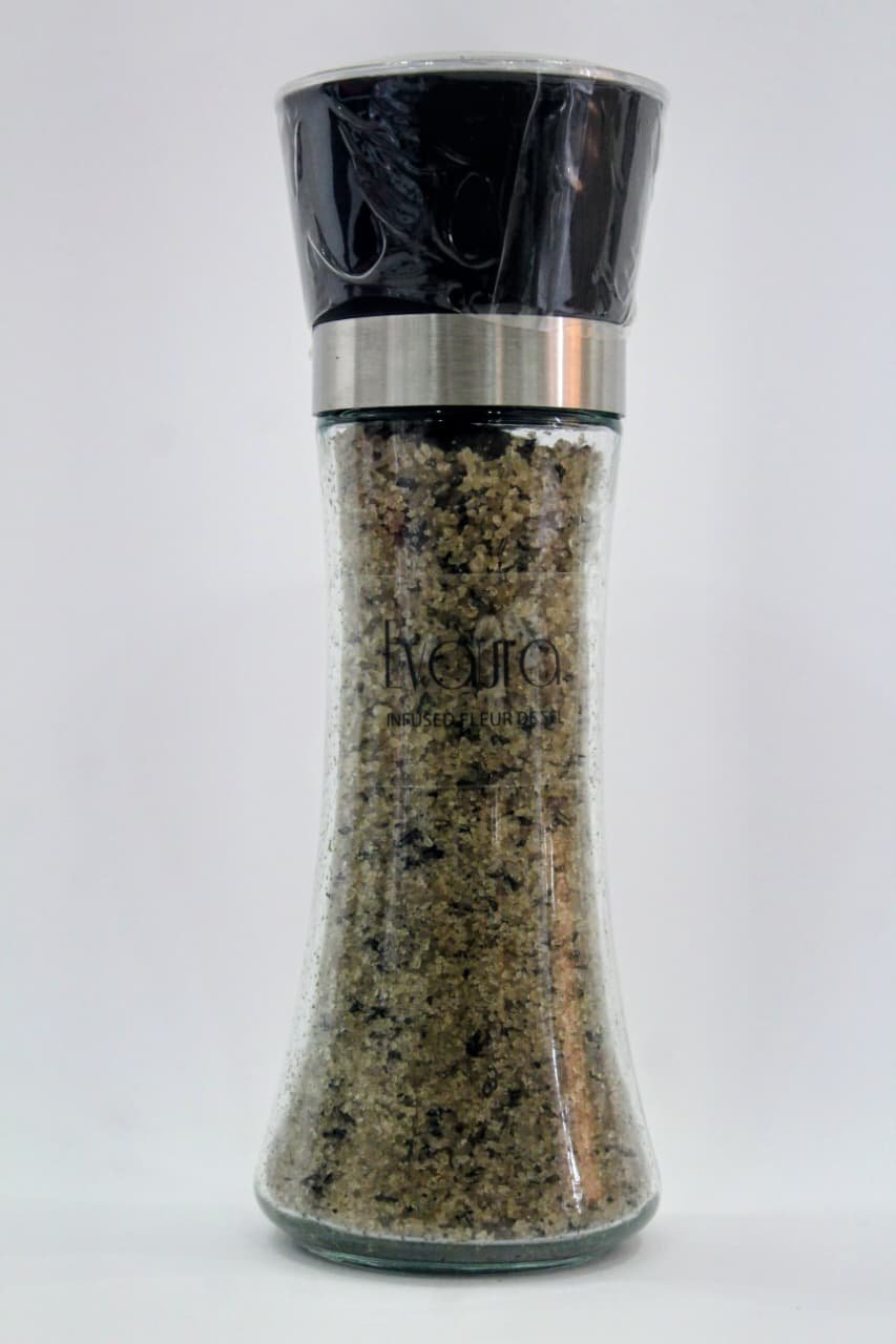 Evaura Fleur de Sel with Oregano combines delicate, hand-harvested Fleur de Sel flakes with fragrant oregano for a fresh, slightly earthy Mediterranean finish. The light texture of the salt enhances flavor, while the oregano adds aromatic depth without overpowering the dish.