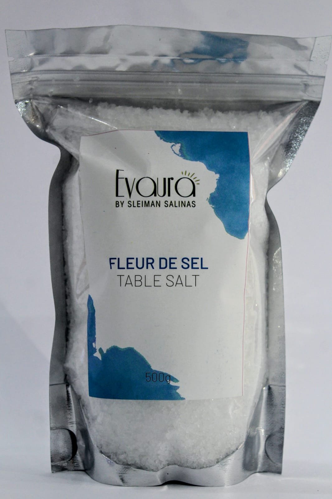 Evaura Fleur de Sel is a delicate finishing salt with light, crisp flakes—crafted for clean flavor and an elegant crunch on every dish.